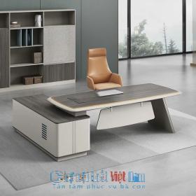 Mẫu bàn này là sự kết hợp hoàn hảo giữa phong cách hiện đại và tiện ích sử dụng. Bàn được làm từ gỗ MDF cao cấp phủ veneer, có khả năng chống nước, chống trầy xước hiệu quả, phù hợp với các văn phòng có lượng công việc lớn.