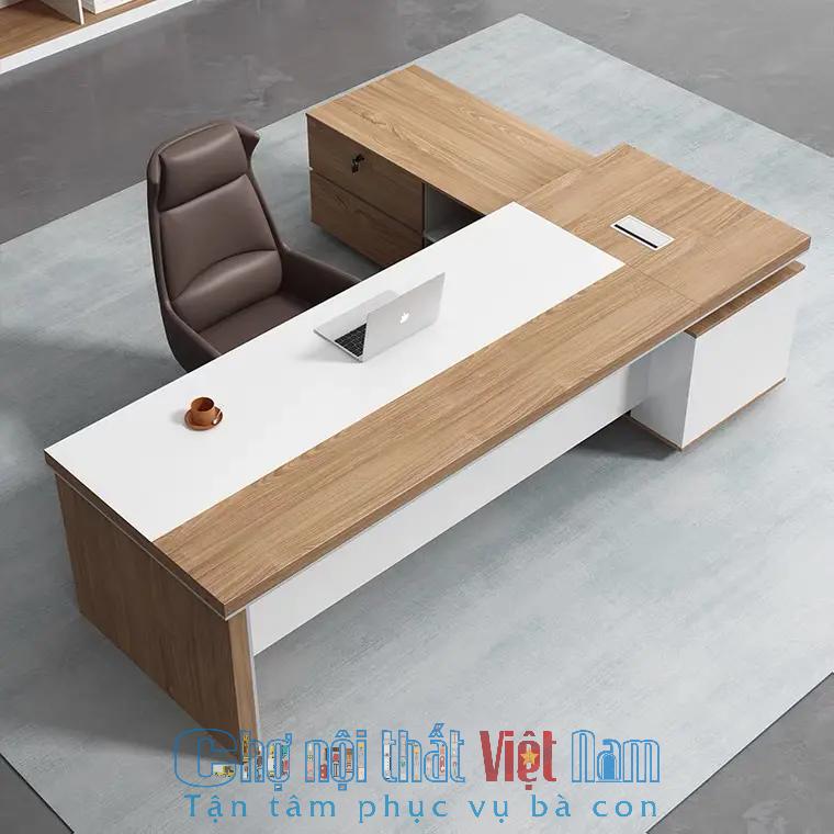 Gỗ công nghiệp phủ Laminate hoặc Acrylic: Sang trọng, bóng đẹp, hiện đại, có độ bền cao, thích hợp với không gian làm việc cao cấp.