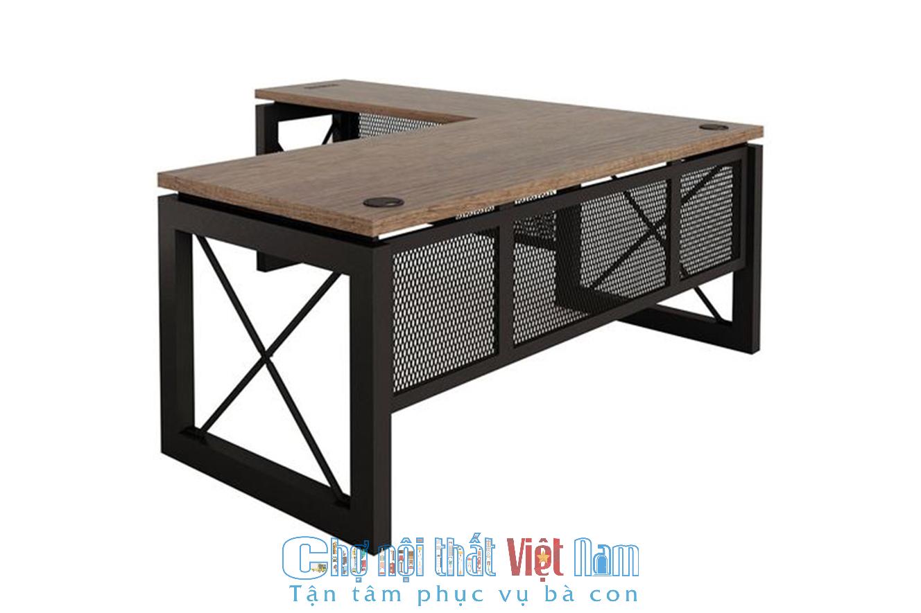 3. Bàn làm việc chữ L chân chéo phong cách Industrial