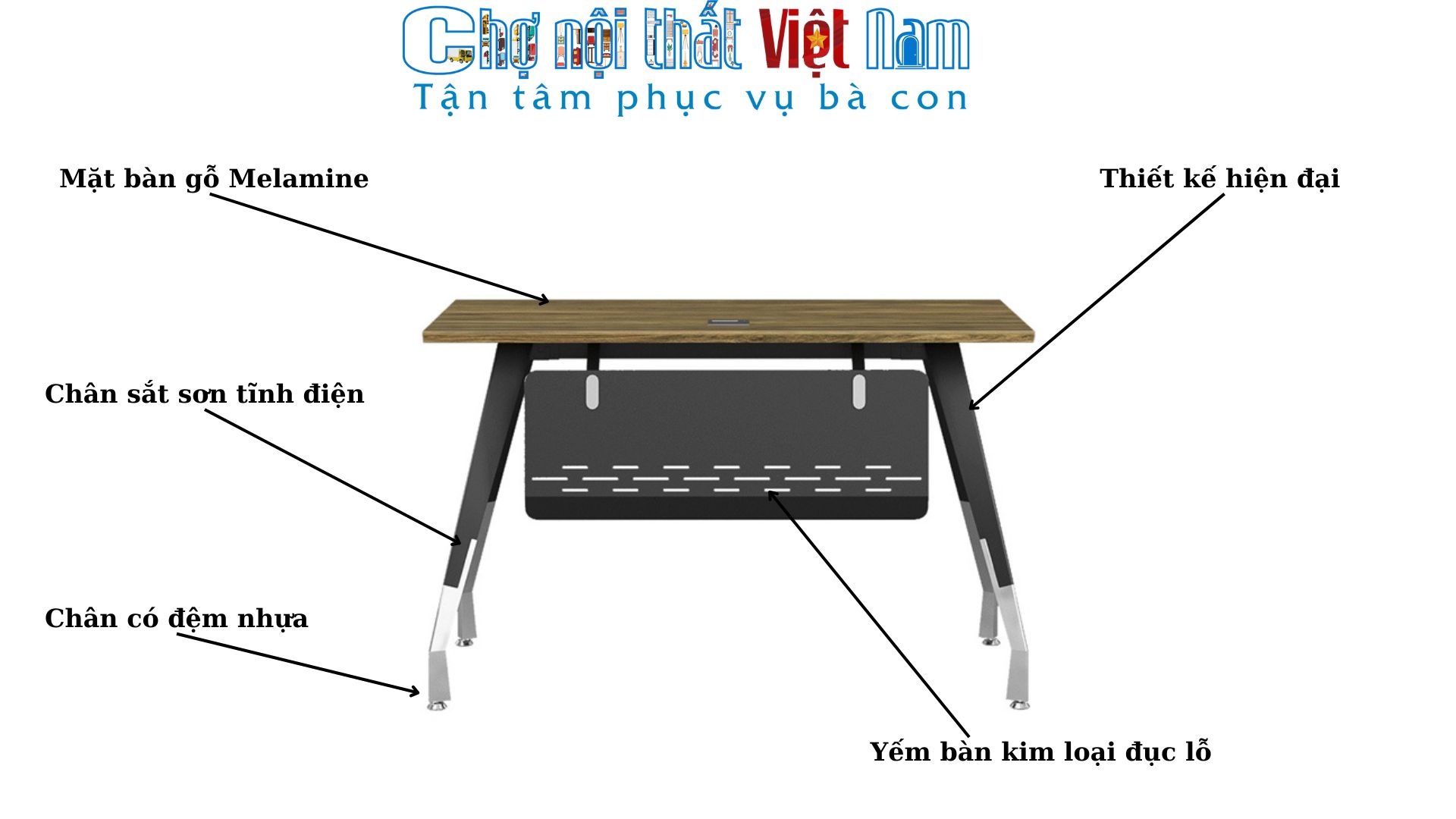 - Mặt bàn: Gỗ công nghiệp Melamine chống trầy xước, chống ẩm mốc, dễ lau chùi.