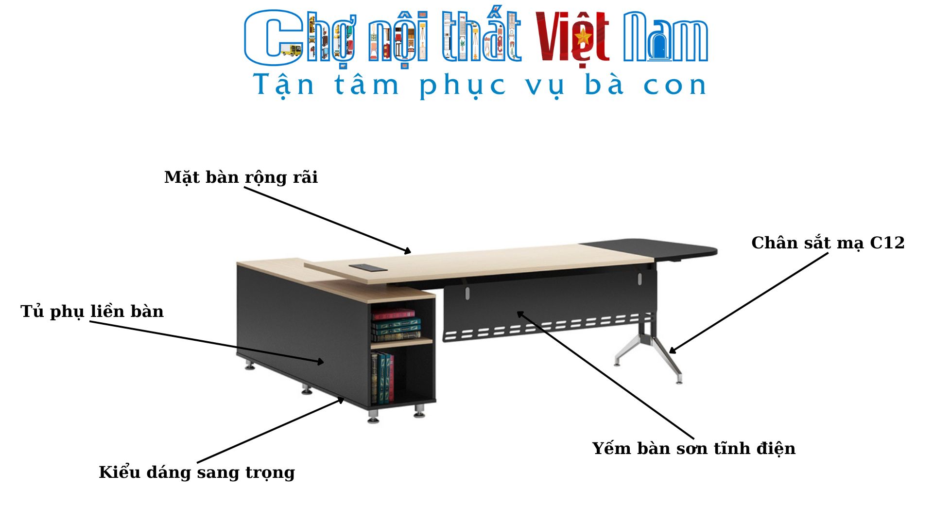 - Loại bàn: Bàn giám đốc chân sắt cao cấp