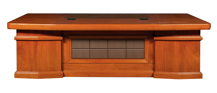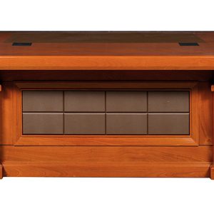 Phần yếm bàn được thiết kế họa tiết trang trí đối xứng, tạo điểm nhấn thẩm mỹ và tăng vẻ bề thế cho không gian làm việc.