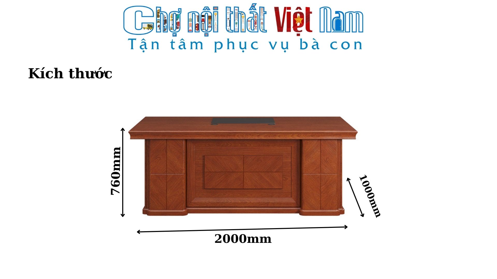 - Kích thước: W2000 x D1000 x H760 mm