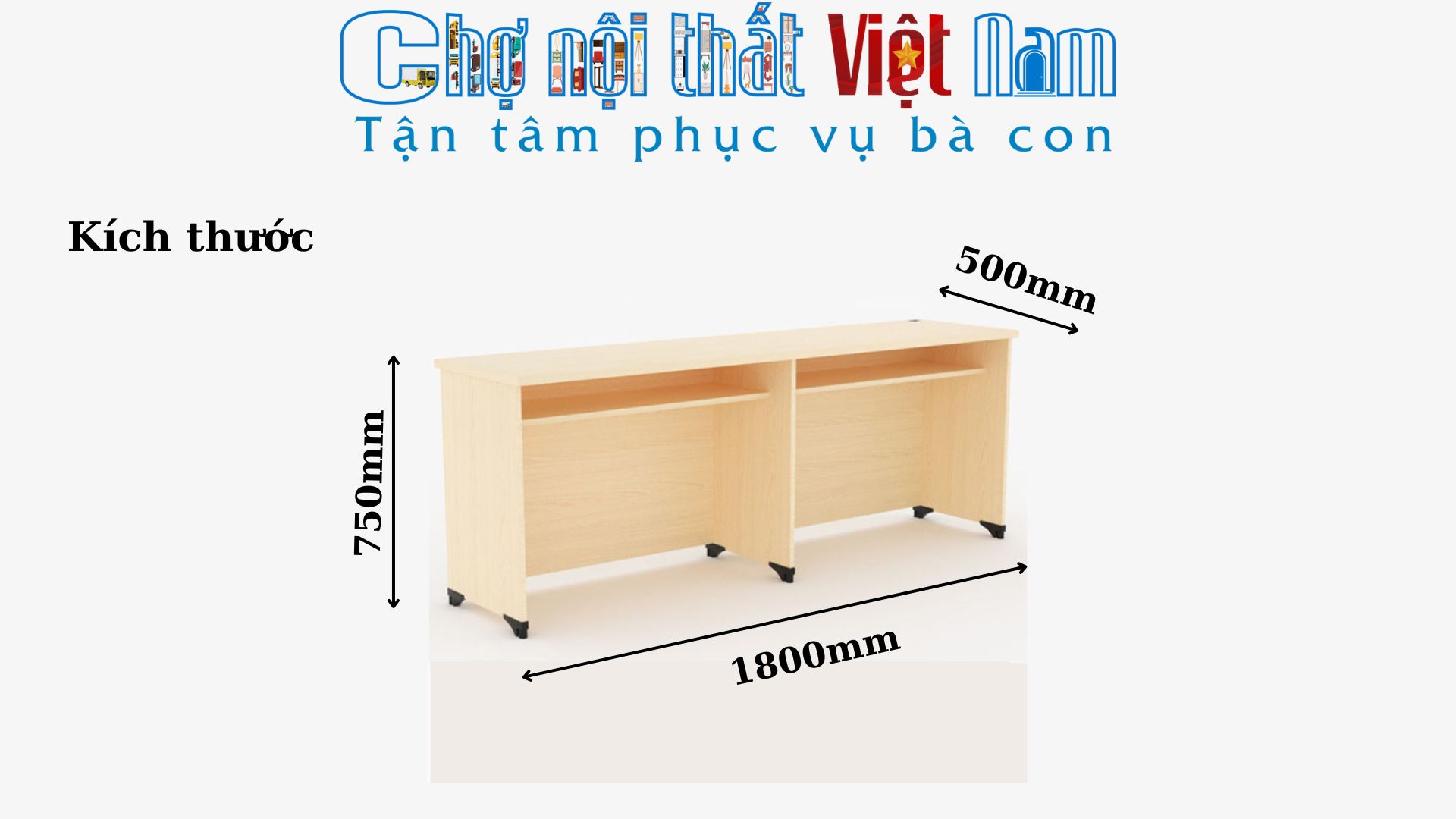Kích thước: AT1850D: W1800 x D500 x H750 mm