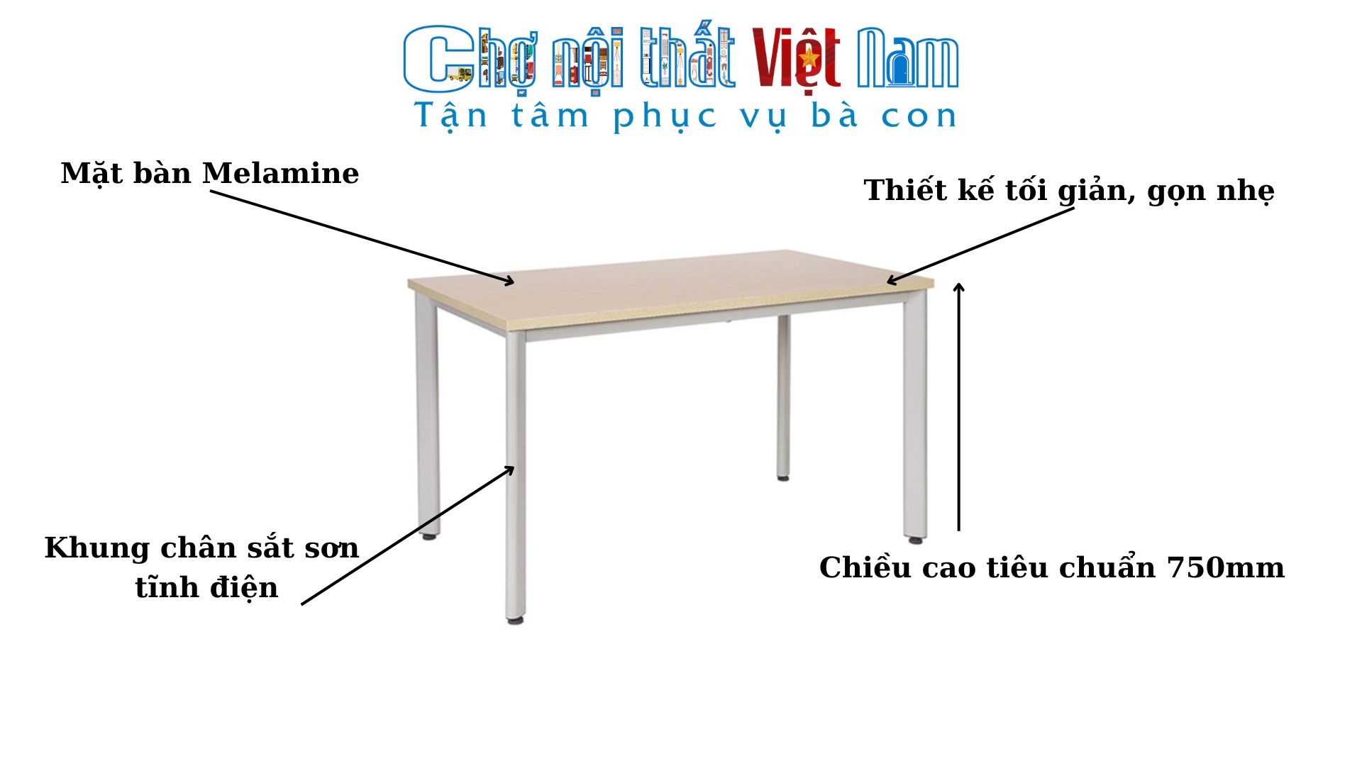 - Mặt bàn gỗ công nghiệp Melamine vân sần, chống xước, chống cháy, hạn chế thấm nước. (Lưu ý: Không để nước đọng tại mép bàn)
