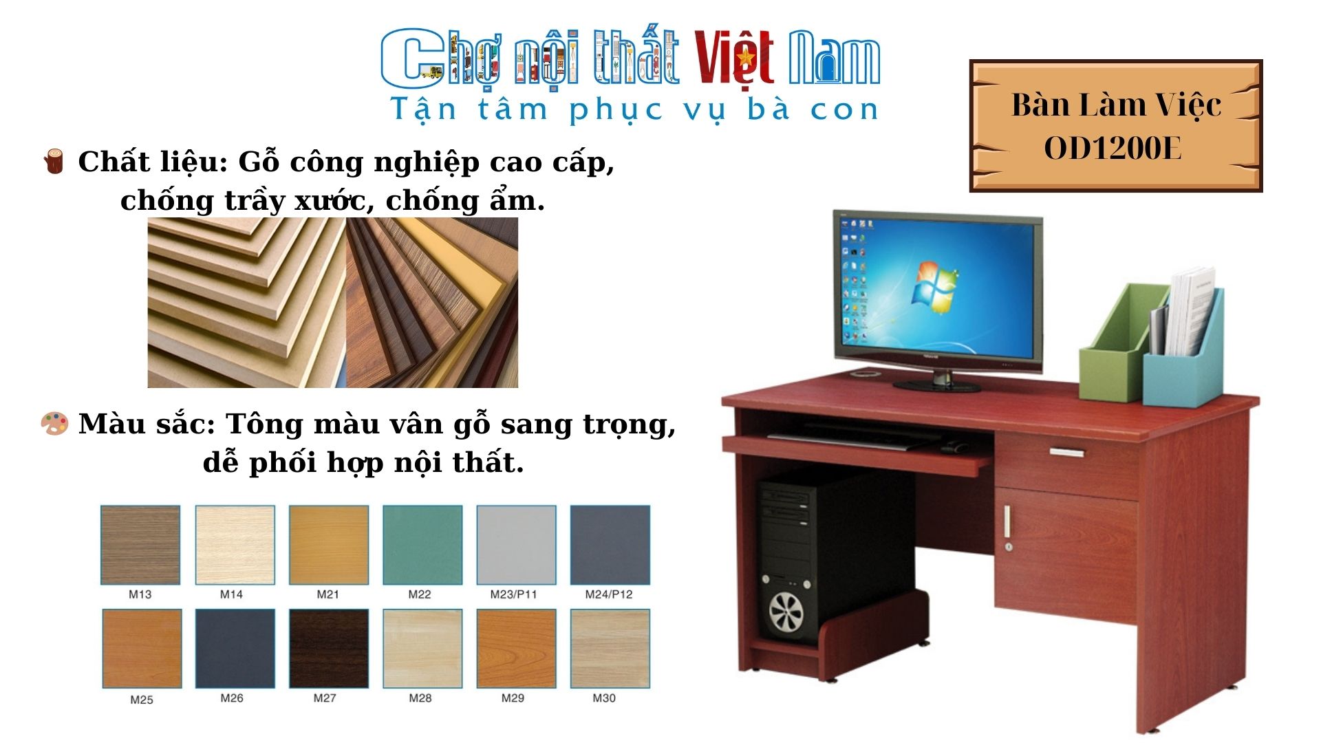 Sản phẩm OD1200E được phân phối bởi Chợ Nội Thất Việt Nam, đơn vị cung cấp nội thất văn phòng uy tín, cam kết sản phẩm chính hãng, giá cả hợp lý và dịch vụ hỗ trợ khách hàng chuyên nghiệp.