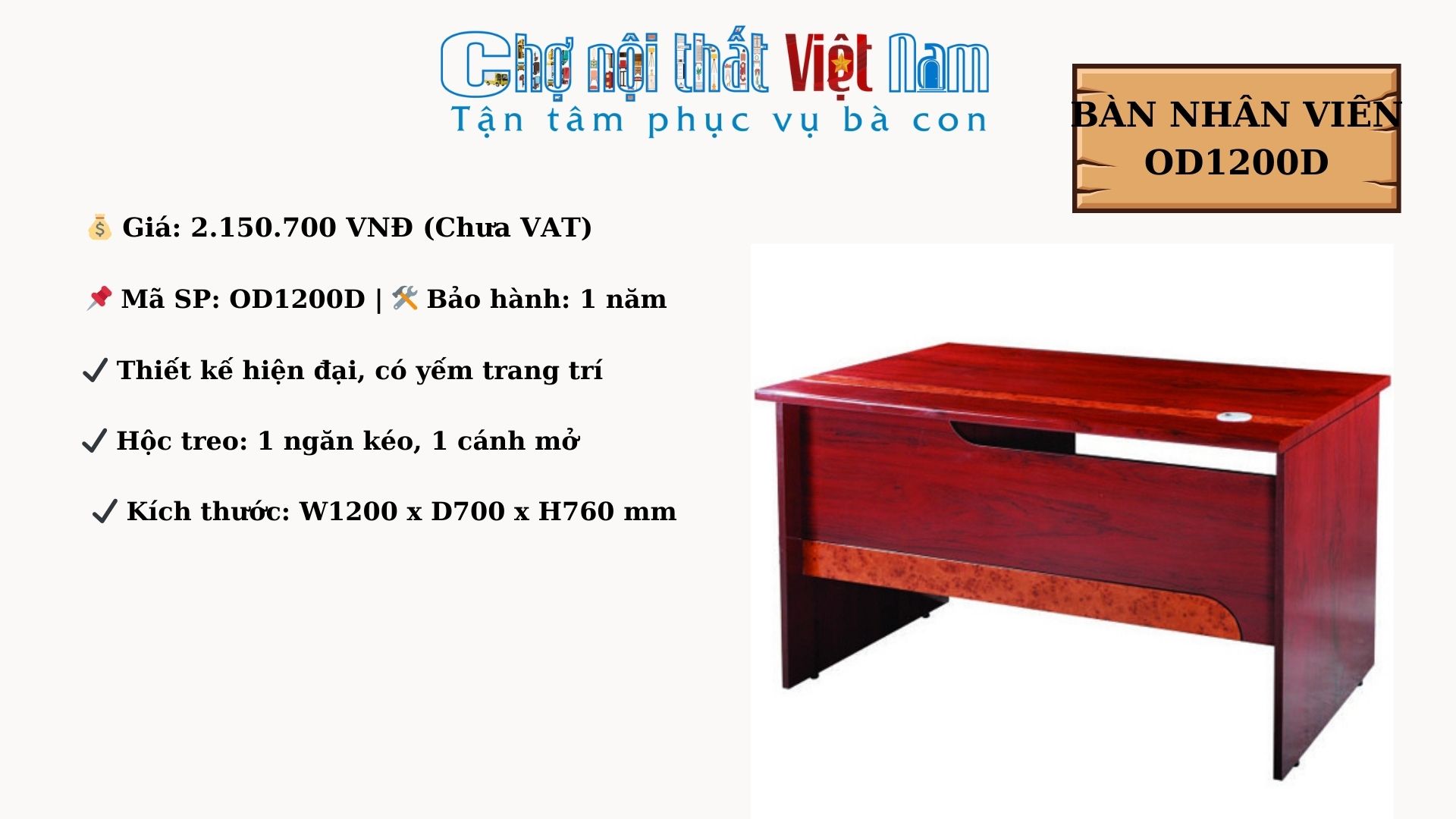📌 01 bàn nhân viên OD1200D