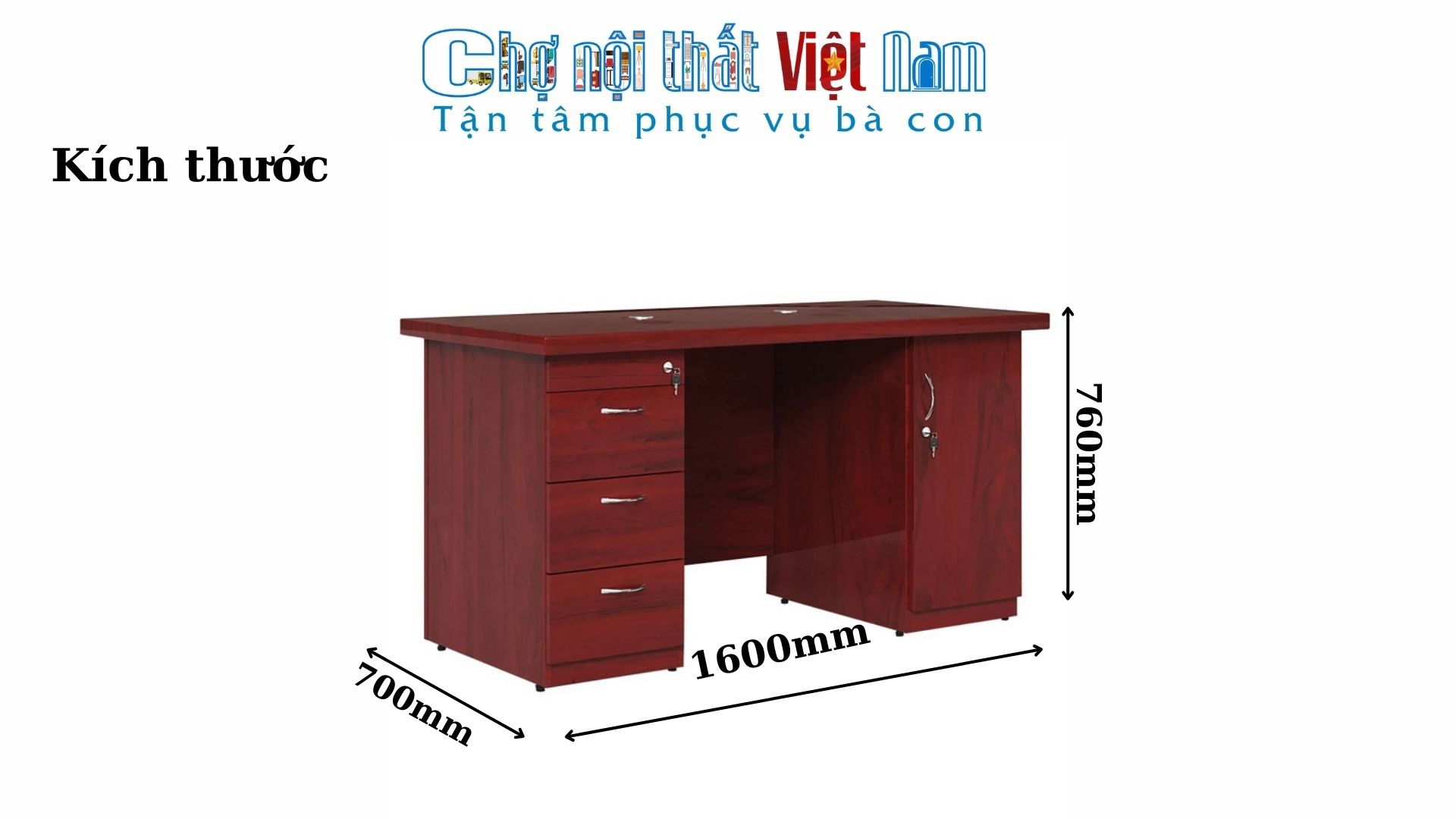 - Kích thước: W1600 x D700 x H760 mm
