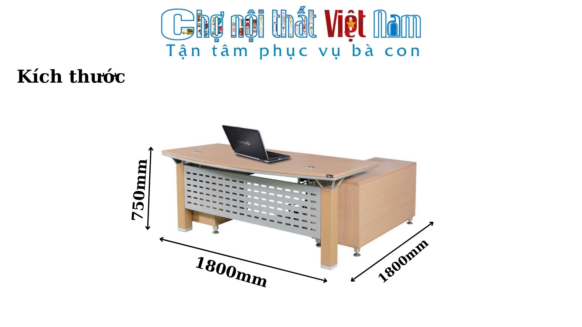 Bàn làm việc: W1800 x D1800 x H750 mm