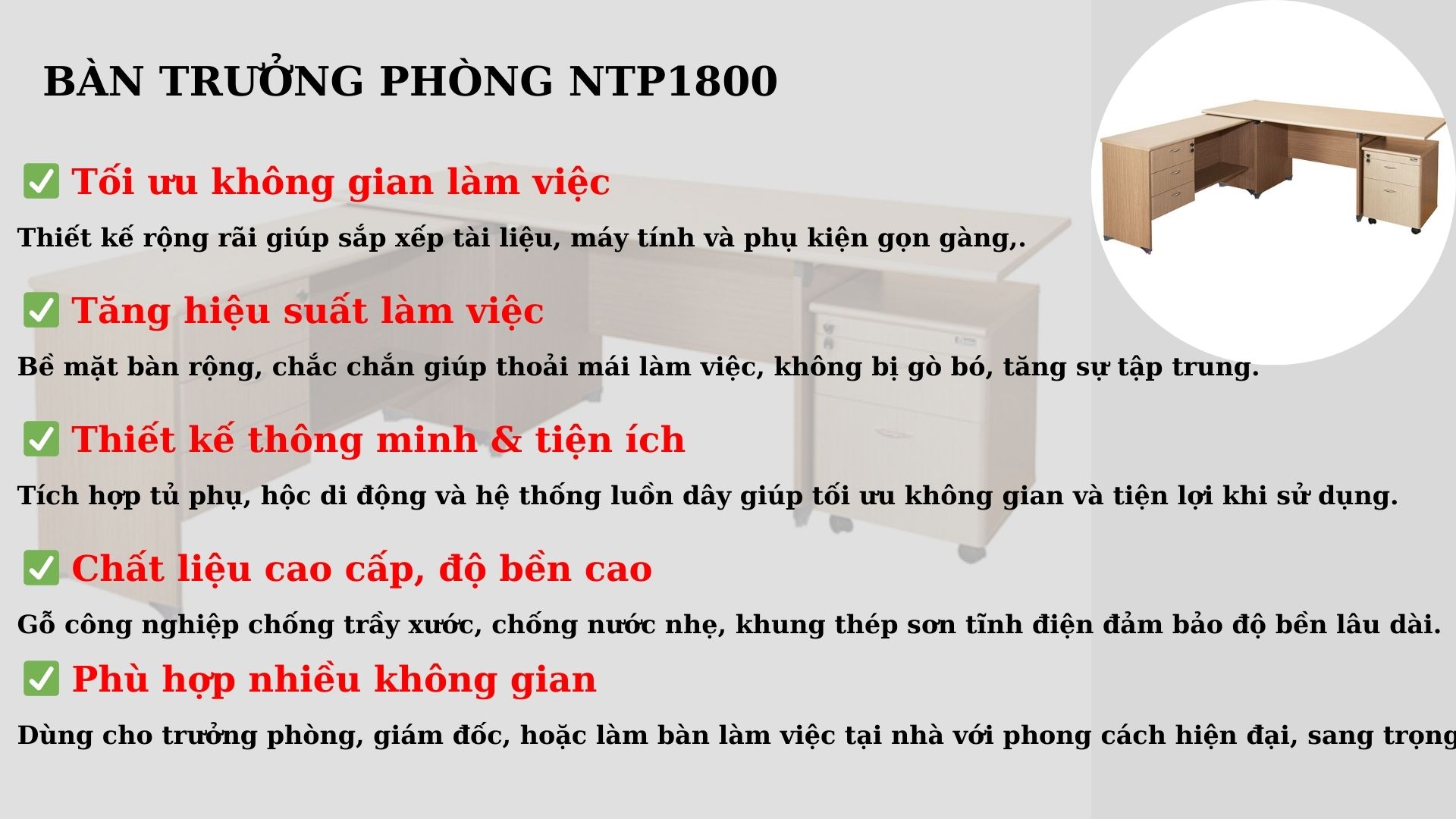 TẠI SAO NÊN CHỌN BÀN TRƯỞNG PHÒNG NTP1800?