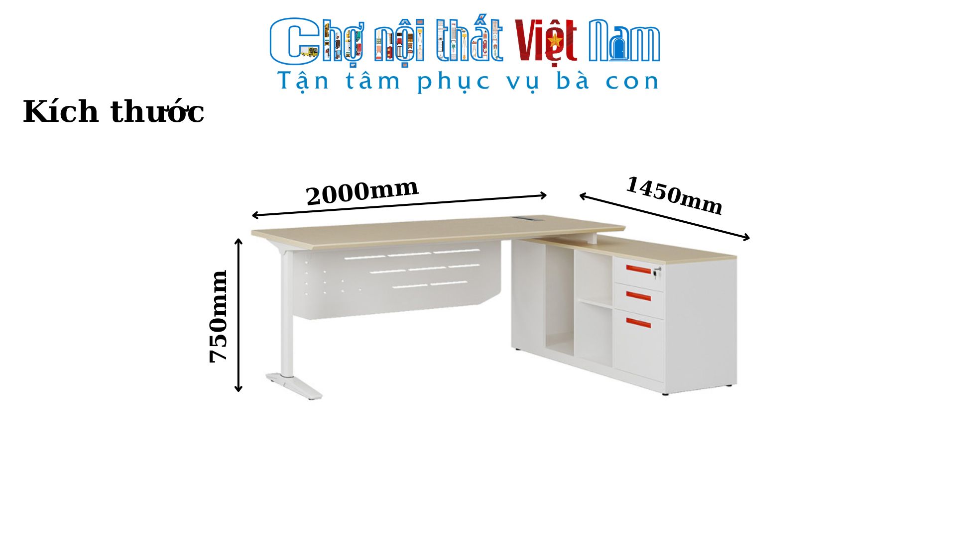 - Kích thước: W2000 x D1450 x H750 mm