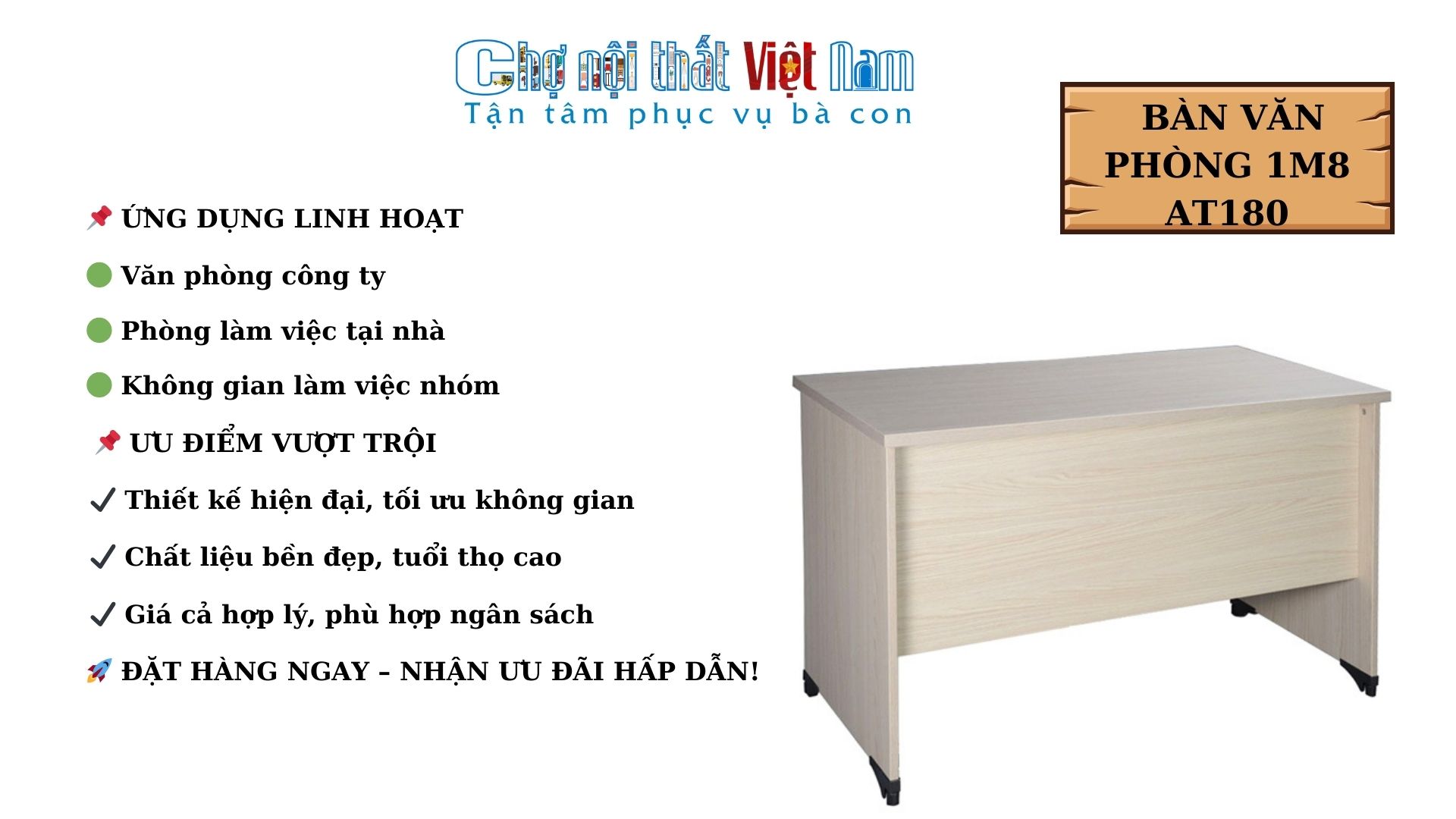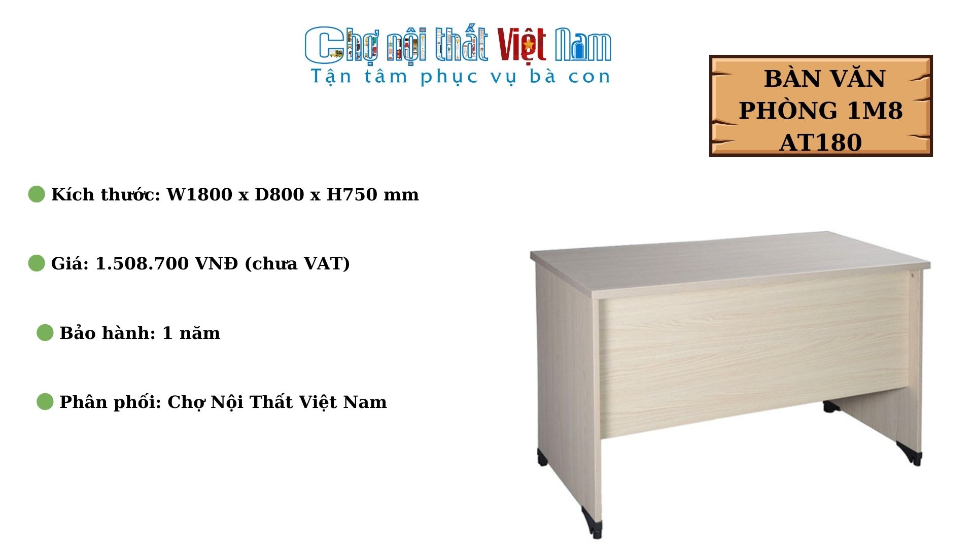 - Tên sản phẩm: Bàn văn phòng 1m8 AT180