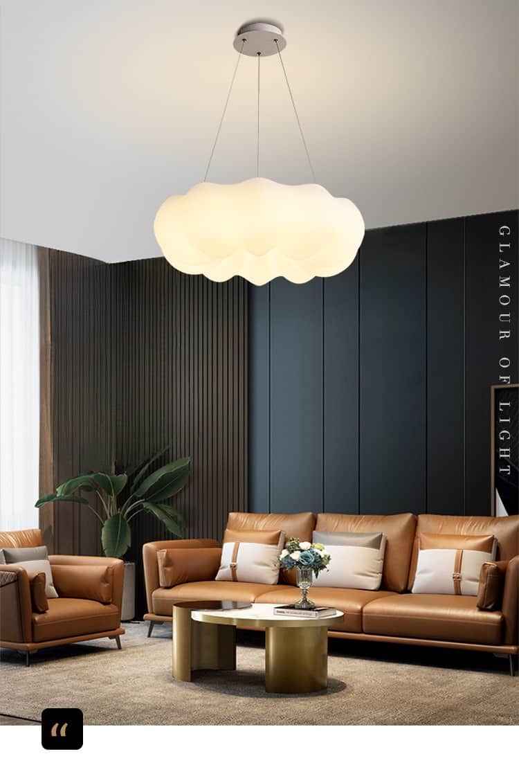 Nếu bạn yêu thích không gian nhẹ nhàng, phóng khoáng thì đèn trang trí thả trần với kiểu dáng đa dạng là một lựa chọn lý tưởng. Loại đèn trang trí này thường được bố trí ở khu vực bàn trà hoặc trung tâm phòng khách, tạo điểm nhấn nghệ thuật đầy ấn tượng.