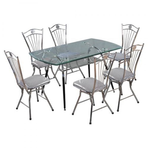 Chân bàn được làm từ khung thép mạ cao cấp, vừa đảm bảo độ chắc chắn vừa tạo nét hiện đại. Đặc biệt, phần dưới bàn được trang bị một đợt kính tiện dụng, giúp bạn có thêm không gian để lưu trữ vật dụng như khăn ăn, chén bát hay các phụ kiện bàn ăn khác.