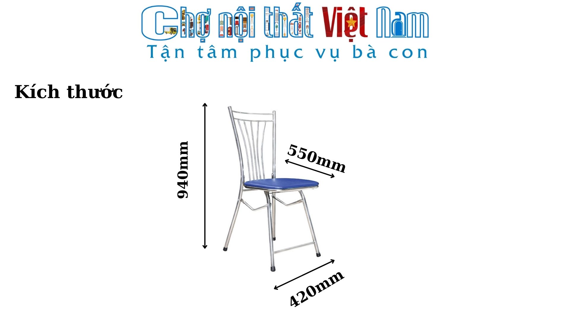 - Khung ghế: Inox sáng bóng, bền bỉ, chống cong vênh và han gỉ theo thời gian.