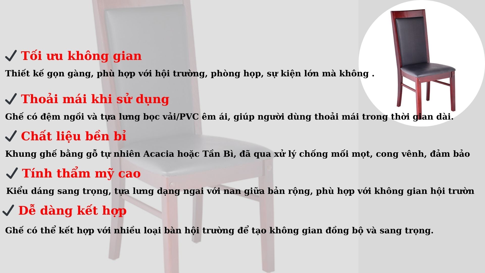 🔥 Dễ dàng kết hợp với bàn hội trường gỗ tự nhiên tăng tính đồng bộ.