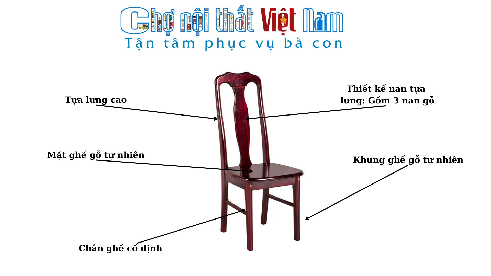 - Tựa ghế 3 nan giúp nâng đỡ lưng người ngồi, tạo sự thoải mái khi sử dụng lâu.
