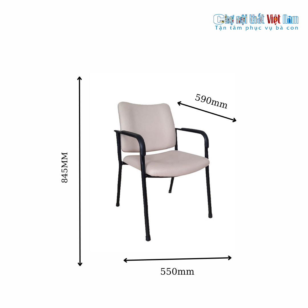 - VT5 Ghế họp đệm tựa bọc vải nỉ hoặc PVC, khung thép mạ, có tay ốp nhựa