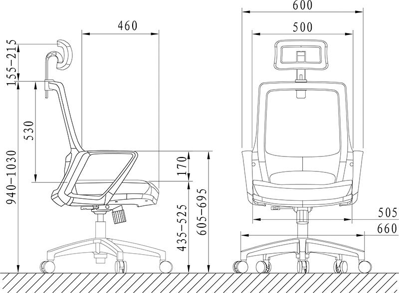 Phần lưng ghế được thiết kế cao với đường may chắc chắn và tỉ mỉ. Đệm ngồi được vát cong theo hình thác nước, giúp định vị tư thế ngồi cho người sử dụng một cách chính xác, không bị trơn tuột khi làm việc. Tay vịn của ghế được làm từ nhựa uốn cong theo một đường mềm mại và được ốp da nhô lên, giúp người sử dụng không bị đau khuỷu tay khi dựa.