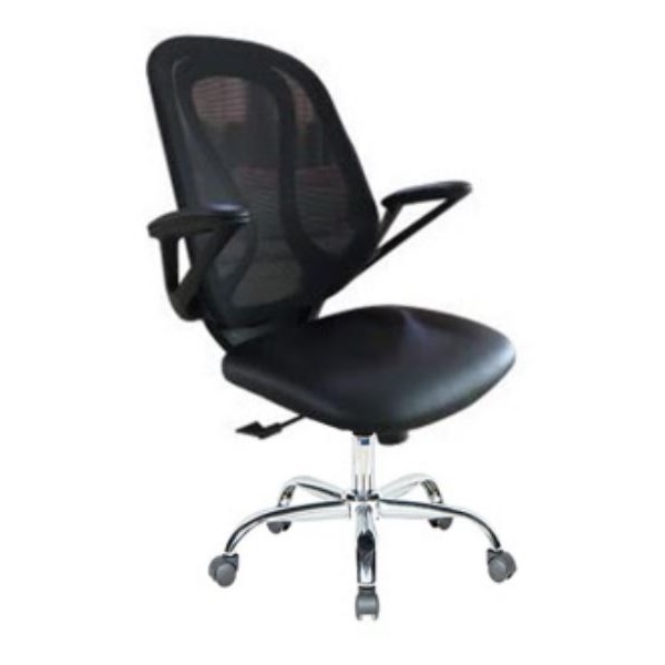 Chất liệu: Tựa lưng lưới. Khung ghế nhựa. Đệm bọc pvc. Tay bọc pvc. Chân mạ hoặc nhựa