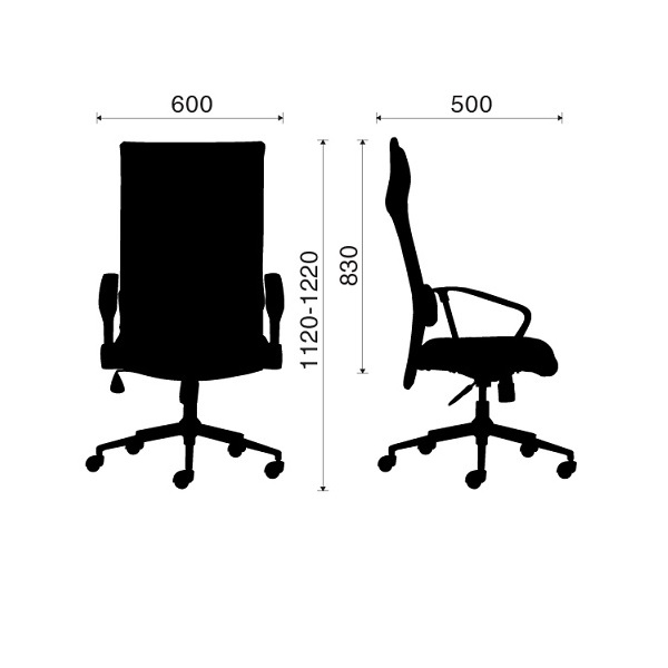 Ghế có tựa đầu: W600 x D500 x H(1120 -1200) mm
