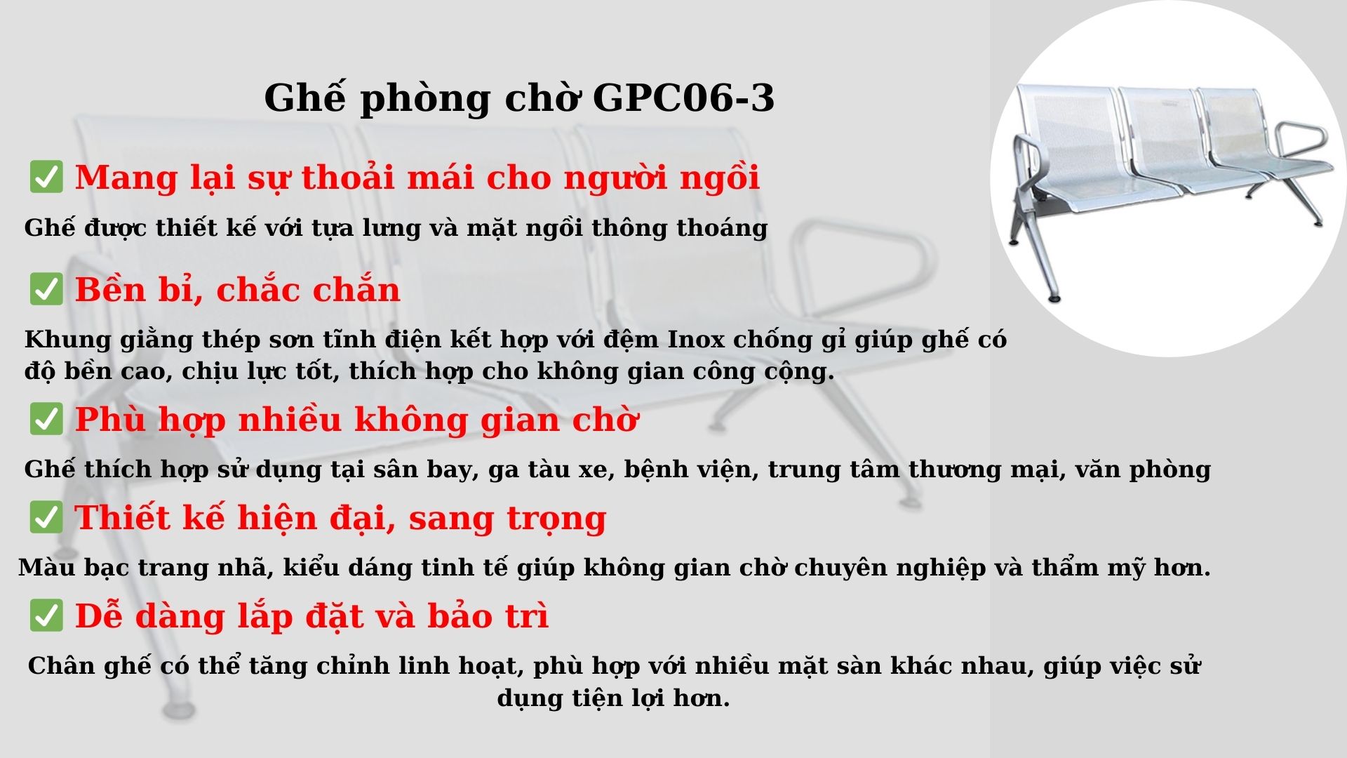 ✔ Ghế phòng chờ GPC06-3 chính hãng