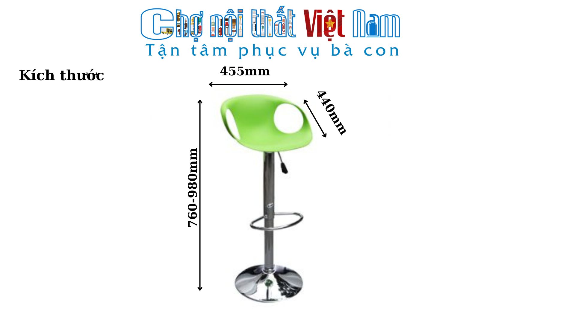 • Kích thước: W455 x D440 x H(760-980) mm