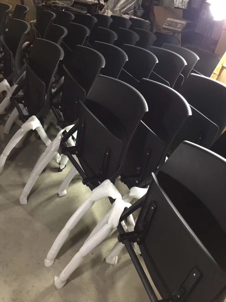 Cách bố trí này giúp ngăn ngừa sự ẩm ướt khi mồ hôi ra. Ngoài ra, bàn viết được thiết kế có rãnh để đặt bút rất tiện lợi. Khi không sử dụng, bàn có thể gập lại nhanh chóng mà không gây cản trở. Chân ghế được cố định và có bọc đệm cao su, giúp ngăn chặn trơn trượt và tiếng ồn khi di chuyển. Điều này đảm bảo bề mặt sàn nhà không bị trầy xước và mang lại tính thẩm mỹ cao.
