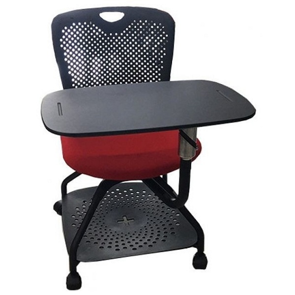 Cách bố trí này giúp ngăn ngừa sự ẩm ướt khi mồ hôi ra. Ngoài ra, bàn viết được thiết kế có rãnh để đặt bút rất tiện lợi. Khi không sử dụng, bàn có thể gập lại nhanh chóng mà không gây cản trở. Chân ghế được cố định và có bọc đệm cao su, giúp ngăn chặn trơn trượt và tiếng ồn khi di chuyển. Điều này đảm bảo bề mặt sàn nhà không bị trầy xước và mang lại tính thẩm mỹ cao.