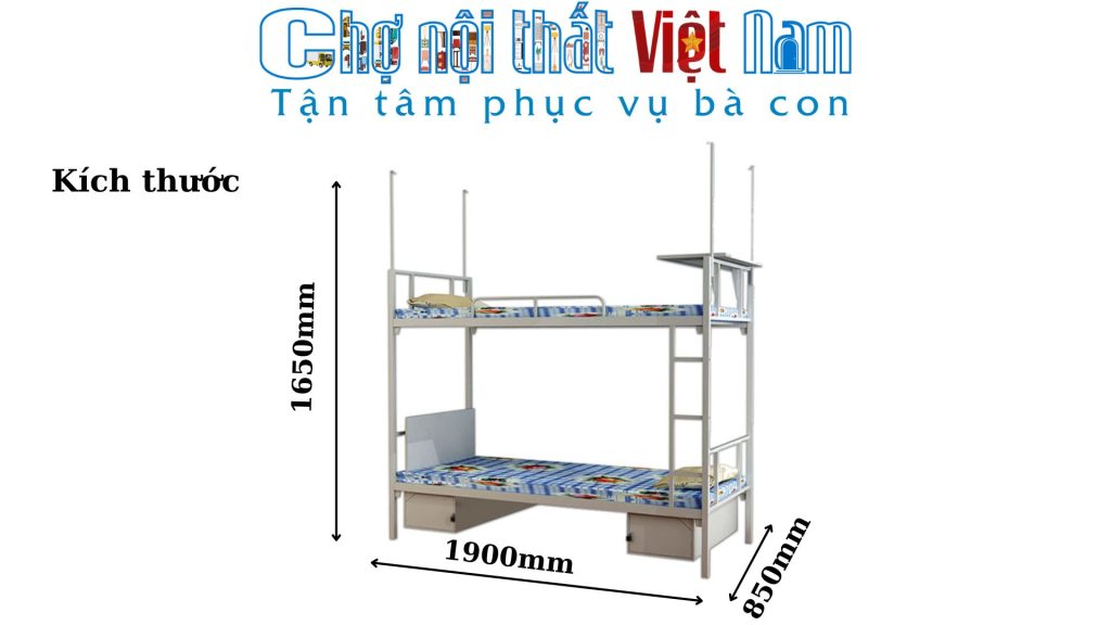 - H2: 1350mm (Chiều cao từ mặt đất lên giường tầng 2)