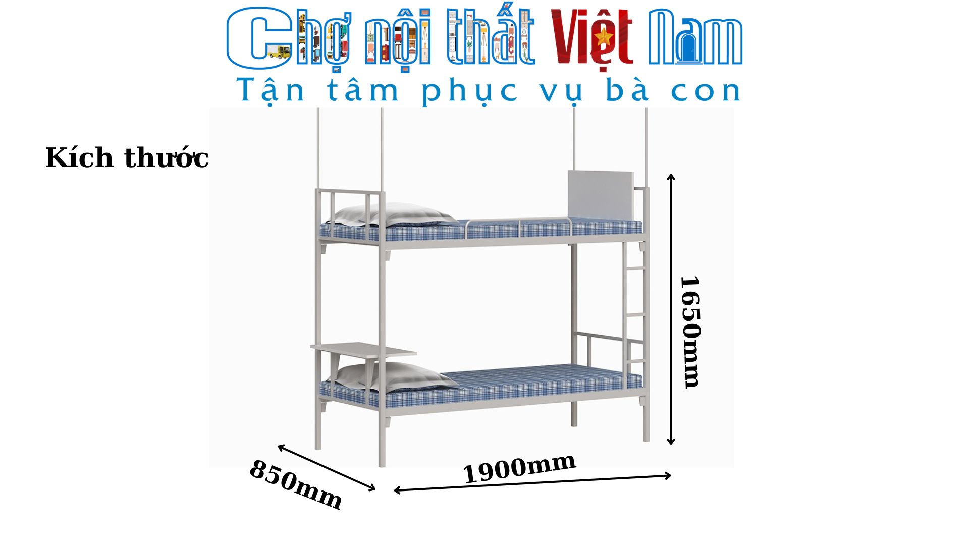 Mô tả sản phẩm Giường tầng sắt sinh viên Chợ Nội Thất Việt Nam GT40BR Giường 2 tầng Chợ Nội Thất Việt Nam GT40BR thiết kế kiểu dáng đơn giản, gọn gàng, tối ưu không gian và tiện lợi khi sử dụng. Giường được sản xuất từ chất liệu cao cấp, bền đẹp, khung thép sơn tĩnh điện chắc chắn, giát giường gỗ Okal cao cấp, mang đến sự hiện đại và an toàn.