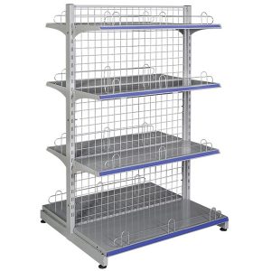 Kệ siêu thị GST01 có kiểu dáng kệ đôi, là gồm 2 dãy kệ đơn đấu lưng vào nhau nhưng chung 1 trụ, kiểu trưng bày loại kệ đôi này khác với giá kệ siêu thị đơn GST02 là thường được kê ngay giữa mặt bằng để người tiêu dùng có thể đi lại chọn lựa 2 bên và cũng bởi đặc tính loại kệ đôi là để bầy sản phẩm ở cả 2 phía trước và sau.