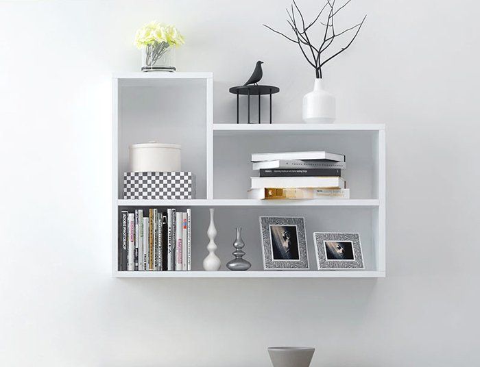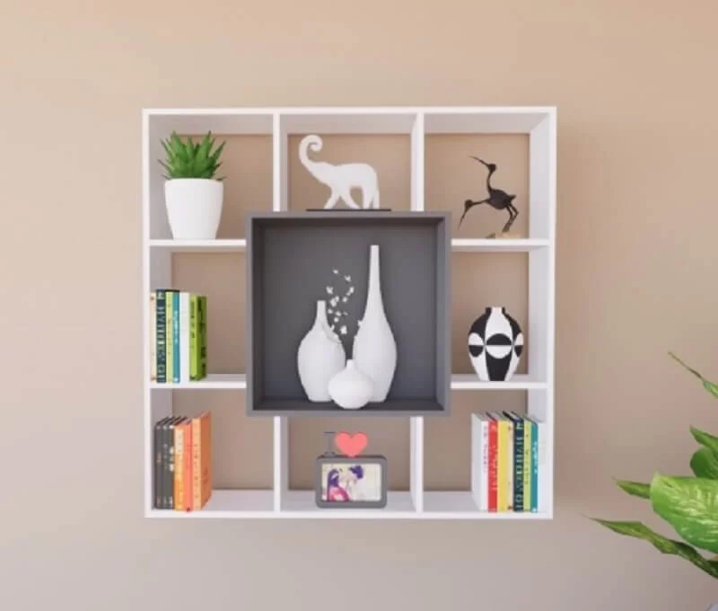 Kệ ô vuông là mẫu kệ treo tường phòng khách được ưa chuộng nhờ sự đơn giản mà hiệu quả. Các ô vuông liền kề hoặc rời nhau giúp bạn dễ dàng bài trí sách, lọ hoa hay đồ lưu niệm. Mẫu kệ này rất thích hợp cho những không gian phòng khách hiện đại, tối giản.