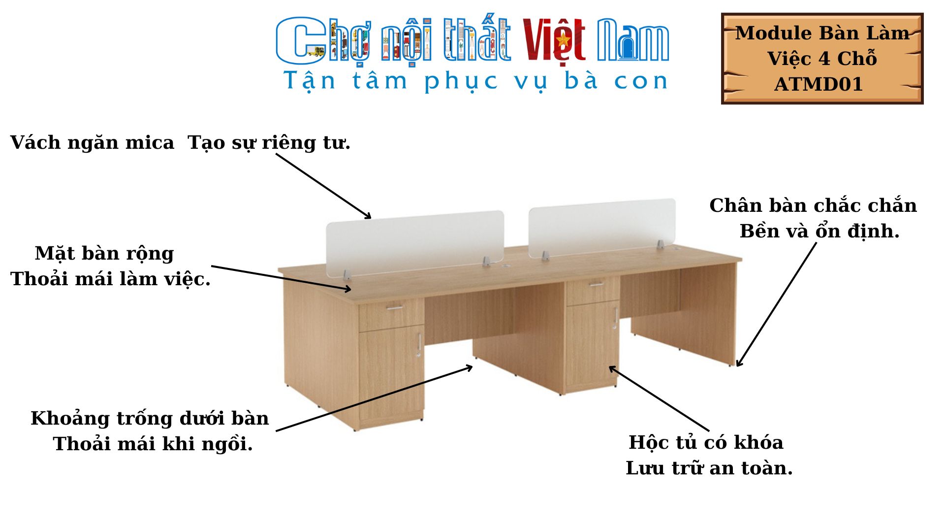Module Bàn Làm Việc 4 Chỗ ATMD01