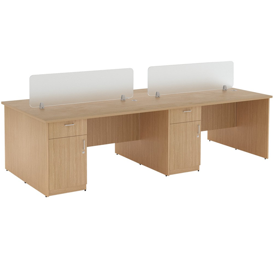 - Bàn làm việc 4 chỗ ngồi: Giúp tối ưu không gian sử dụng và tăng cường sự kết nối giữa các thành viên trong nhóm.