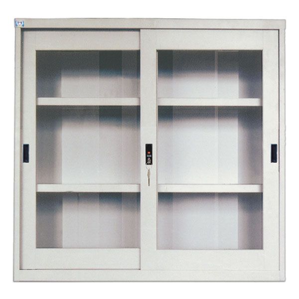 Kiểu dáng: Tủ gồm 1 khoang, có 2 đợt di động, sử dụng cánh kính lùa khung thép