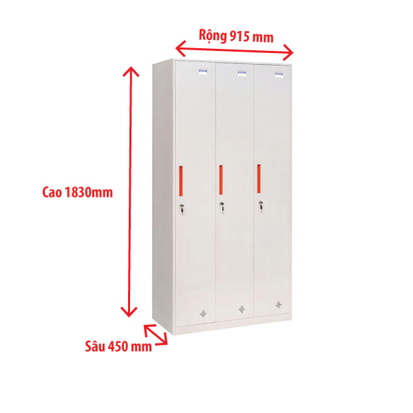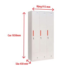 Tủ locker sắt có cấu trúc đơn giản nhưng hiệu quả, gồm 3 khoang cánh dài dạng đứng. Mỗi khoang được thiết kế thông minh với: