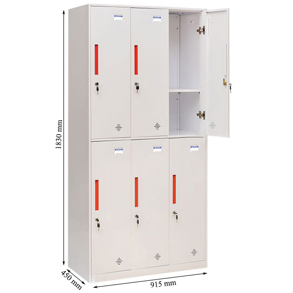 Tủ locker sắt Chợ Nội Thất Việt Nam TU982-3KD sở hữu thiết kế dạng đứng đơn giản nhưng vô cùng tiện dụng. Tủ bao gồm 6 khoang cánh dài mở, mỗi khoang đều được trang bị:
