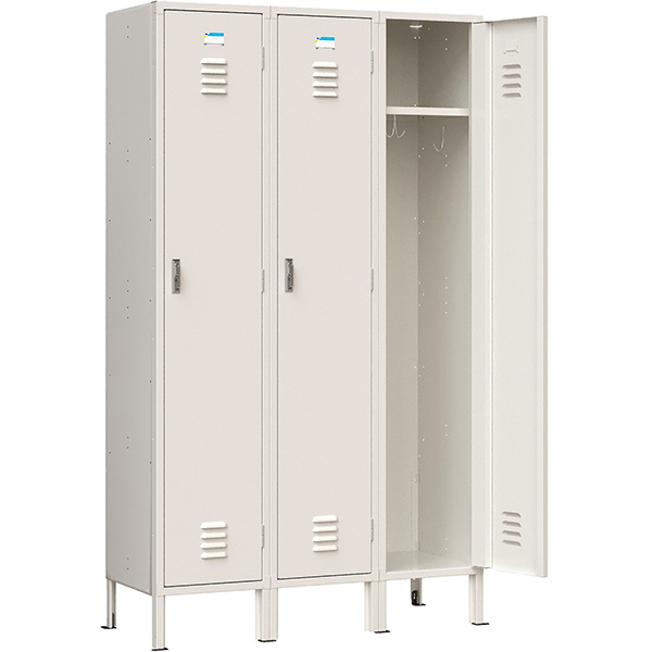 Tủ locker sắt được thiết kế gồm 3 khoang cánh mở riêng biệt, bên trong mỗi khoang có 1 đợt cố định và 1 suốt treo quần áo, giúp dễ dàng cất trữ các vật dụng cá nhân như áo khoác, nón bảo hiểm, giày dép hay các đồ dùng khác. Mỗi khoang đều có trang bị khóa riêng, đảm bảo tính an toàn và bảo mật tối đa cho người sử dụng.