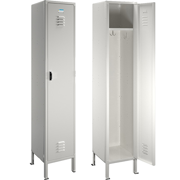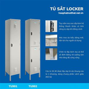 - Kiểu dáng: Tủ locker 1 cánh, trong có 1 đợt cố định, 3 móc treo đơn, 1 móc treo đôi. Cánh sử dụng thanh khóa tự sập khi đóng. Chân đế có mặt bích có thể cố định xuống sàn.